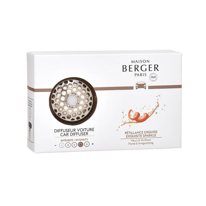 El difusor para coche de la prestigiosa marca de perfumes Maison Berger, no es un simple ambientador, se trata de un original difusor metálico de alta calidad fabricado en cromo con un clip te tipo pinza para colocar en las rejillas de ventilación de cualquier vehículo y que contiene un innovador sistema cerámico recargable y disponible en 12 fragancias para que escojas la que más se ajusta a la personalidad de tu vehículo.