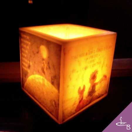 .- Fanal de 10 x 10 x 10 , es un cubo abierto por arriba para meter una velita de té , al encenderla parece una lámpara pero con la calidez que dá la luz de una vela.